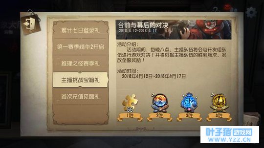 时装奖励 然后就是主播战的奖励,主播和游戏开发者进行比赛,主播没赢一场,全服都有不同的奖励。从线索到记忆珍宝,算是听丰厚了,希望主播们加油啊。