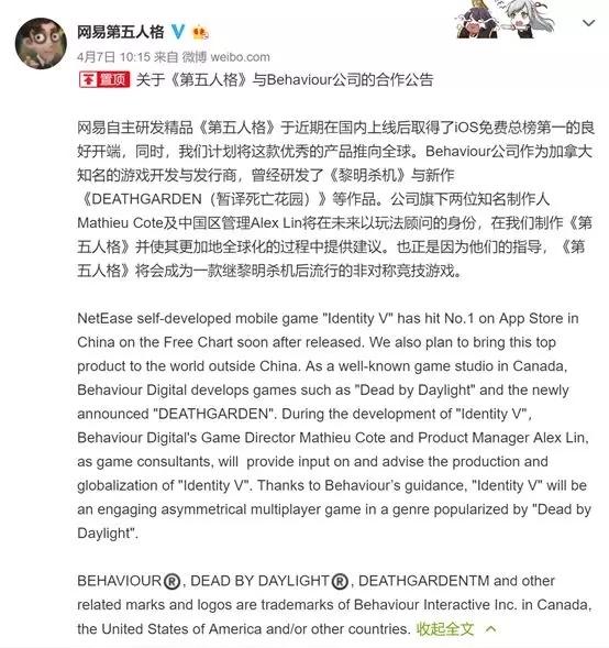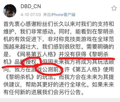 网易也声称黎明杀机制作人会以玩法顾问的身份参与第五人格