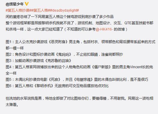 不过未获得版权然后在被告抄袭之前迅速谈好合作又是什么操作! 除了黎明杀机,第五人格还被网友质疑抄袭其他作品。