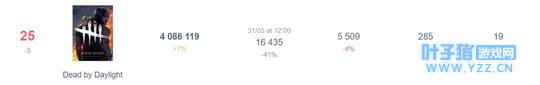 还有一系列不对称竞技游戏《十三号星期五》《诅咒》《死亡境界》等等,大都走了恐怖题材路线,《黎明杀机》的开发商在研发的新作《死亡花园》也延续了这个传统。 如今在Twitch,直播热度最高的依然是大紫大红的吃鸡《堡垒之夜》和《绝地求生》,经久不衰的MOBA《英雄联盟》和《DOTA2》,还有暴雪创作的《守望先锋》《魔兽世界》,以及近期上架的大作《盗贼之海》等。《黎明杀机》尽管曾经闯入热度前十的行列,但如今仅维持在25位,这个成绩不算低也不算高,也是这一类玩法如今的真实写照。