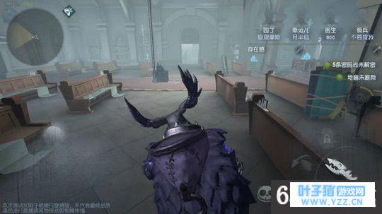 墓地这块区域是个长方形区域,地形很长直线较多,并且附近都是一些长墙壁,一不小心很容易被监管者追上。所以在这块区域解码最好要提前观察好板窗的地方,在心跳显示比较急促的时候就要赶紧跑路。 教堂