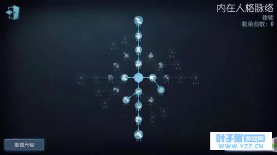 天赋点法: 点法主要是冷静和友善两个方向为主。 友善—羊群效应:当队友在5米范围内,增加范围内队友3%/5%/7%破译、治疗的破坏行动的速度。 点满并配合自身的蛊惑特质,队友共提升了17%的破译速度。 冷静—霍桑效应:当队友在5米范围内时,每个队友增加自己3%/3.5%/4%的破译速度。 4人一起协同破译:自己提升12% 3人一起协同破译:自己提升8% 2人一起协同破译:自己提升4% 这个天赋虽然主要提升自己的破译速度,但在队友较多的情况下,收益相当可观。 冷静—旁观者:治疗他人速度提高20%,并显示受伤的求生者。 (找队友和治疗更加方便) 友善—化险为夷:30秒的无敌,算是目前监管者最烦的求生者天赋之一了。 (队友救后,被监管者打中触发搏命挣扎,不会倒地,还能加速,30秒后伤害才会触发,尽量30秒内摆脱监管者) 哪怕最后还是被监管者捉住了,但也给队友争取了30秒的时间。 配合剩下了其他天赋:火中取栗和寒意 一个更快的救人,一个在监管者看你时得到警告。 以上天赋主要是配合律师的外在特质,与队友配合,救人,治疗于一身,不管是新手还是打排位都有的一玩。 确定在与板窗交互慢,所以,不管你辅助能力怎么强,都强不过监管者~ 看到他来快跑吧,可以让队友吸引火力,你只要埋头破解密码机就行。