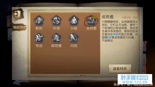 因为蜘蛛比其他监守者较矮,所以是几乎无法攻击到翻窗的求生者的,虽然可以吐丝,但求生者也是能换窗户的,所以【禁闭空间】是我们到达高端局所必须的。 第一种天赋蜘蛛携带技能 推荐:【巡视者】