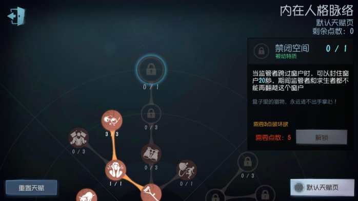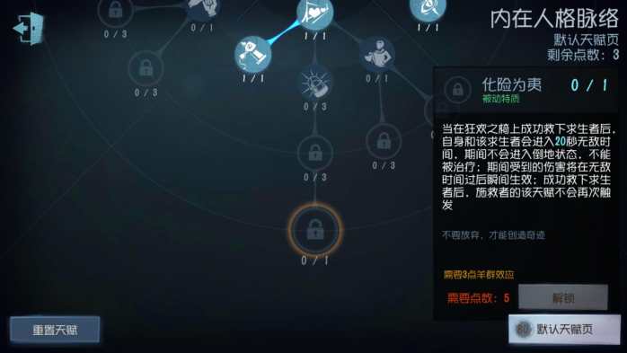 在人类天赋的最下端,救下人类玩家后,双方进入一段时间的无敌(搏命挣扎),如果受到伤害会在无敌时间后倒地。对局中只能触发一次。