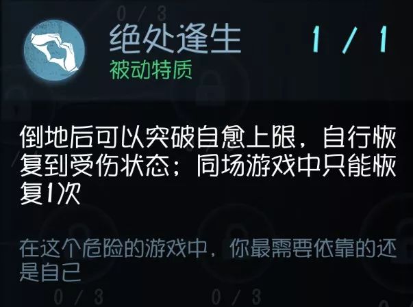 ,这个时候屠夫恰好没有追你,通过自愈也可以站起来。总的来说这个技能在某些时候是神技,特别是配合开黑队互救触发拼命挣扎的效果,但一般情况下利用率不会太高。