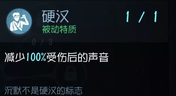 冷静系的第一个技能。大家知道受伤之后人物是会发出声音的,自己听的话还是非常明显,但对于屠夫来说就不是非常明显了,至少我 玩屠夫的时候是很少听到受伤后的娇喘 ……(除非你长期呆在一个角落),不过作为所有“冷静”系技能的前置,没有办法不点 实用性:★ 泛用性:★★