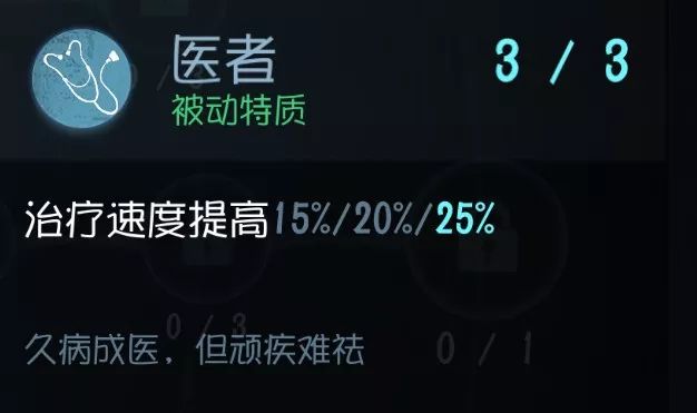 这个技能除了能增加治疗速度之外,还能 无距离限制 显示所有受伤的求生者 。现在的环境除非屠夫太菜,不然基本都是带伤的。而且受伤者往往会被BOSS猛追,所以也就 间接的预判了BOSS的位置 ,对于全局观是可以很好的把控 ,医生的话这个技能甚至是必点。当然前面要牺牲相当多的点数,值不值得就看个人了(我是觉得值的) 实用性:★★★★ 泛用性:★★★★★