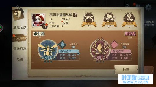 后来买了杰克,觉得很牛逼了,隐身走的贼快,再加上我有八十人格了,横扫所有求生者!