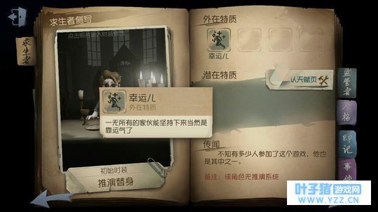 这两个角色的定位就是帮助队友吸引监管者火力,所以他们在破解点击方面不仅没有任何优势,还有可能会帮倒忙,所以作为新手的求生者们,可以尽情的使用这两个角色去练习溜屠夫的操作,为队友争取破解电机的时间。当玩家们看到监管者或者心跳反应不在慌张的时候,或许使用幸运儿都可以轻松获得游戏的胜利了。