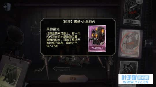 蜘蛛·水晶烛台皮肤 2·蜘蛛的背景故事? 官方给出的蜘蛛背景故事如下 瓦尔莱塔本是一位出名的马戏团演员。不过当观众们渐渐失去了兴趣,她还是一度沦落到三流马戏团表演滑稽戏。在一位机械师的帮助下,给瓦尔莱塔自己装上了灵活的机械义肢和一些精巧的机关装置,并创造出了新的表演项目——“人形蜘蛛秀”。虽然老东家拒绝了她的演出,可瓦尔莱塔并没有气馁,她接受了另外一份演出邀请,准备在欧利蒂丝庄园举行自己的复出秀。 然而蜘蛛皮肤附带信息却给出了另一个故事