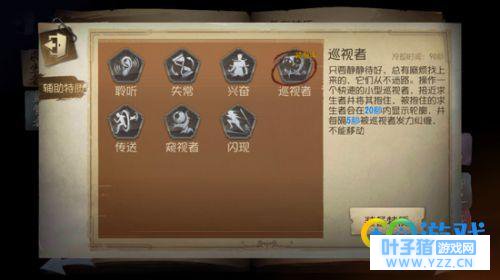 杰克二阶技能能隐身和JIA速,但是只要一交互就会被迫解除技能,这段时间的杰克会很无力,求生者很容易逃脱。所以我们选择带闪现主要就是为了减少杰克的交互,在一些无法穿越的地形直接闪现,杀求生者个措手不及。 2.巡视者: