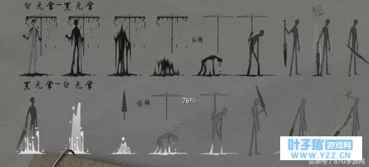 再来看官方爆料的技能设计,好像会有一个位移的效果,应该是利用伞来实现位移,黑无常状态是短位移,白无常状态是长位移,到时候可能也会有分身的效果也说不定。