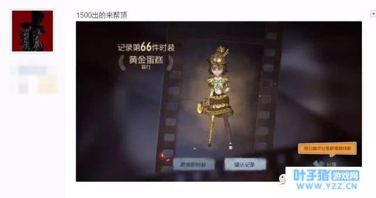 盲女黄金蛋糕(金色品质),250次必定会出,开一次宝箱96回声,250*96=24000回声,就是2400必出金色蛋糕,总体的概率是0.5%。当然,如果你运气好的话也可以一分钱不花(反正提莫莫是个非洲人~哎,这个看脸的时代)还是建议大家理性开宝箱,量力而行,不要上头哟~(提莫莫内心满满的痛啊~) 下面我们就来看大佬是多少抽中黄金蛋糕的