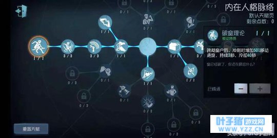 3、翻窗后发现自己忽然跑得飞快,那是因为点了“破窗理论”。这个无论是逃跑还是溜屠夫都非常好用,是一个非常实用的人格点。