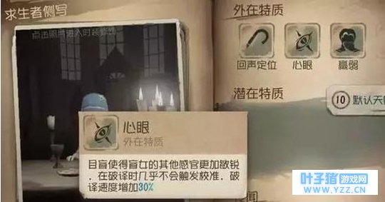 盲女最强大的技能就是回声定位。这个技能可以帮助她透视到屠夫的位置,但是在玩盲女时一定要注意,尽量少做一些板窗交互动作,被屠户发现时,尽量到一些障碍物多的地方,利用墙壁和门,不断走位,来摆脱监管者。