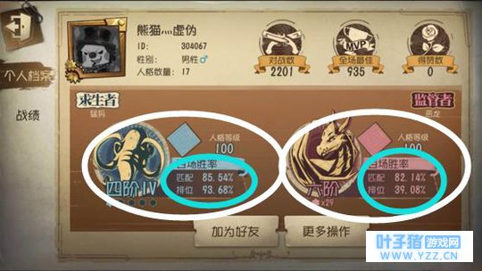 给大家举个例子,国服第一监管者熊猫主播虚伪,六阶29星,排位胜率39%!你敢信?是他太菜了吗?再告诉你一个数据,他的求生者排位胜率93%!比求生者排行榜前十的主播都高!而且这不是个只打了三五局的求生者,他现在已经四阶Ⅳ段了,最起码玩了500局求生者。