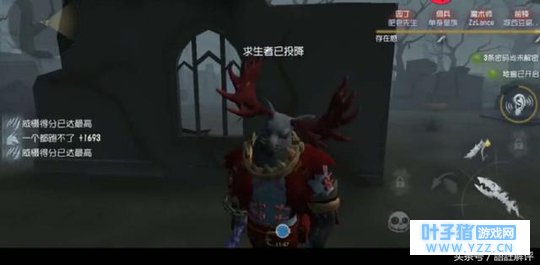 这时,英勇无畏大“前锋”刚想跳下地窖的瞬间被钩住回拉怼晕,心疼小伙子一秒钟。啊語仿佛听见了小伙子心碎的神态以及耳边的低语:“MMP”!绝望的英勇无畏大“前锋”在被送上摇摇椅后,满怀愤满之情点了投降!监管者—“鹿头”仰天大笑,又一场斗智斗勇的庄园惊悚探险游戏结束了。