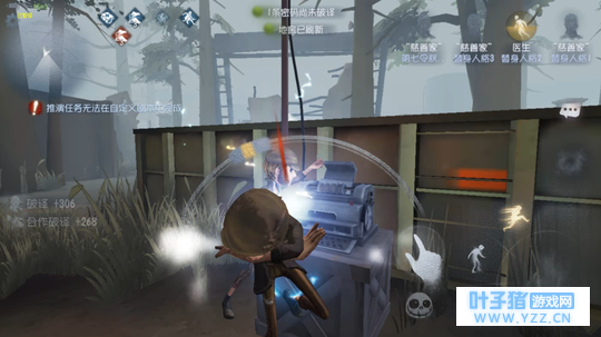 然后再用手电筒让他进入辣眼睛状态后逃走 哦对了,屠夫可以踩烂木板的