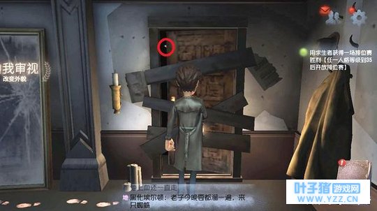 然而最让我意想不到的是当我在那个思索着它的存在意义之时,这个门突然打开了一个小门缝,小门缝里露出了一个诡异的眼睛,这个诡异的眼睛一直盯着正在看着屏幕的我,吓得我撒腿就跑,我不是拉着侦探跑,而是现实中我撒腿就跑,已经来不及操控里面的侦探了,真的太吓人了,没想到网易还会在游戏大厅里设计一个这样的东西,不过小编觉得门里那个人应该是解开整个游戏剧情的关键所在,至于里面那人是谁,小编个人认为还真有可能是其中一个监管者。