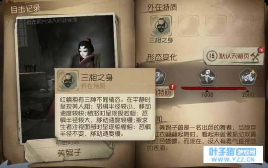 红蝶每个形态都有具体的作用,比如还是正常状态时的移速将会加快,但是恐惧半径较小,变成其他的状态后恐惧半径或变大或不变,但是移速都将会变慢。