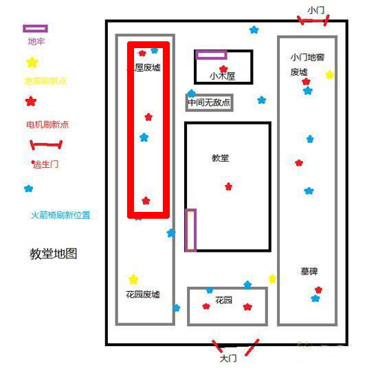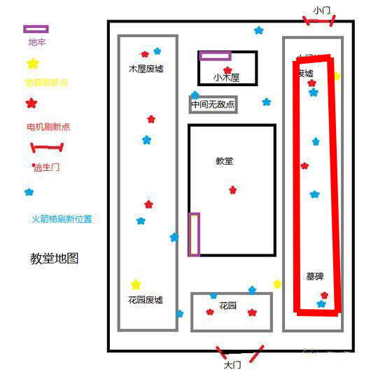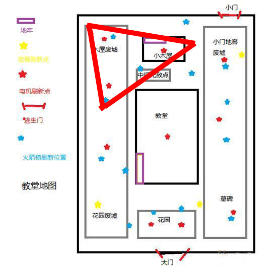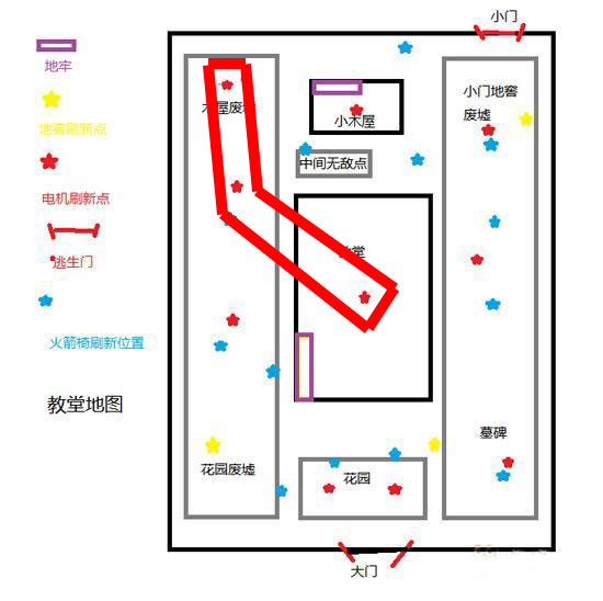 红教堂:因为红教堂地图小(个人感觉是--III),所以可以组合的电机很多种。所以up就不放具体位置图了(偷个懒)