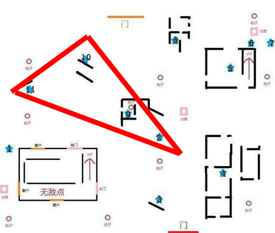 这三个点虽然在无敌区,但是配合织网和失常,基本守机和抓人可以同时做到(织网一定要织在窗户两边) 具体位置图: