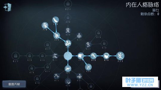 盲女天赋 因为盲女不适合跟监管者皮,但是他解码快,那么就发挥大的优势。加点推荐【云中漫步】【稻草人】【好奇心】和【霍桑效应】从而提升自己的隐藏能力和团队解码效率!然后点右边天赋,【寒意】【回光返照】逃生门开启后可以迅速逃离。