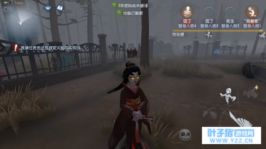 窗户上钉了大木板,你翻啊,再给我翻啊? 禁闭空间,俗称封窗,主要适合于对付人皇,众所周知游戏中除了通过砸板来干扰屠夫外还有一个就是通过翻窗来拉开距离,而这个封窗就是让这个窗户变成一堵墙(雾),使得这里不再安全,主要适合小丑厂长蜘蛛鹿头………好吧,除了杰克和红蝶外都很适合,杰克可以用隐身绕过去,而红蝶可以直接冲过去。 基本上是个神技(ಡωಡ) 3.通缉