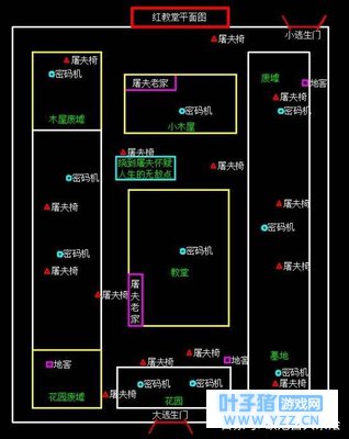 每个地图中都有无敌房和类似于无敌房性质的无敌区。圣心医院在目前版本中算是最大的一张地图,这张地图的无敌点和其他两张地图不一样,医院的两个逃生门不是面对面的,木屋门也在一个小角落里。