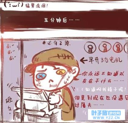 慈善家好伤心呀,不能陪在园丁小姐姐的身边,克利切先生伤心流泪,这猛男流泪还是第一次见呢,五分钟之后.......这慈善家就在默默的修电机,慈善家想,你永远都不知道你的队友在干嘛呢?但是想到园丁在拆椅子,但是现在还没有遇到屠夫呢......不会是挂机了吧?慈善家一个人孤孤单单的破解机子.......