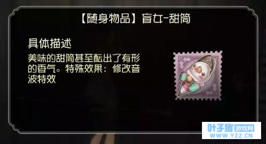 三个排位珍宝中,最后一个就是 盲女的甜筒 了。甜筒可以 改变盲女听到声音时,所产生的音波特效 。