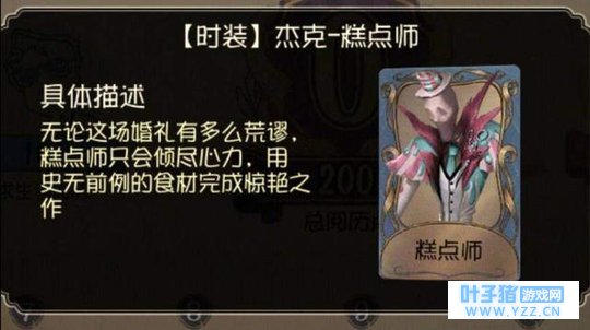 这件时装名叫“糕点师”,是杰克最新的时装,而这件时装的名字其实就已经将杰克的身份出卖,他只是一个糕点师,并不是住在古堡里的伯爵,更不是高富帅。在这件时装的具体描述里,杰克其实也在庄园展露过自己的厨艺,而且是在红蝶的婚礼上,只可惜,这场婚礼以闹剧收场,也不知道杰克做的糕点大家吃了没有。当然,在国外,糕点师也不一定是穷人,不过杰克的另一件时装将他的穷人身份坐实。