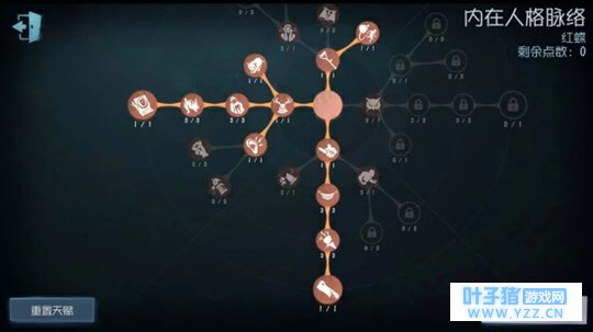 红蝶的加点建议可以点出左下的点法,俗称张狂一刀点法。 【张狂】 线可以让红蝶快速获得存在感,解锁一阶技能。在游戏前期快速获得“闪现”技能。然后再配上追猎获得额外10%的追人移速加成,追逐能力大大加强。 【耳鸣】 主要配合上红蝶的第一形态美人,减少求生者的恐惧范围,打个求生者手足无措。 下边。 【挽留】 线不仅可以增加攻击回复速度,最重要的还是为了点出一刀斩,为了避免遇到车队等人皇,避免在电门开启后无反击之力。