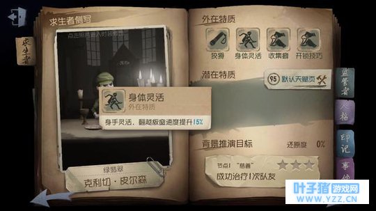 身体灵活,慈善家在翻板窗的速度非常快,所以在溜屠夫上比较省力。因为目前版本屠夫的追击能力都非常强,因此需要能快速逃跑。翻板窗的速度快,可以配合破窗等天赋,来提高逃跑能力。
