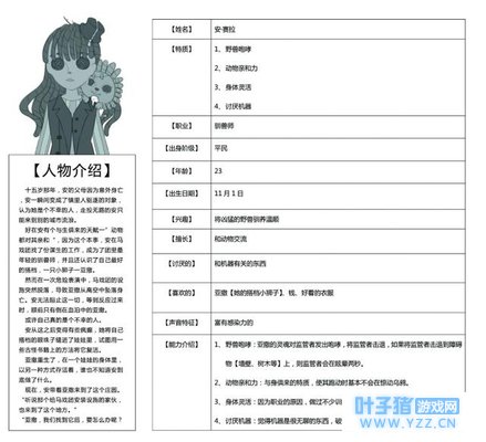各位看官老爷好呀,我还是我,第五人格大侦探二号,小侦探,嘿嘿,这个最新曝光的求生者“驯兽师”,是在「 第五人格 」官方设计比赛中表现突出,受到广大网友好评的一个角色,有的网友还说比 小园丁伍兹还可爱, 但我却感觉这个角色设计的有点面瘫,嘿嘿,比我喜欢的小园丁还差了那么一点点... 下面来给大家介绍一下这个角色。驯兽师呢,名字叫做 安 · 塞拉, 有四个技能。