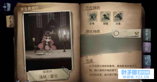 第五人格即将推出新的求生者:驯兽师。不少玩家还不知道技能是什么吧,下面GO君来介绍下这个角色。