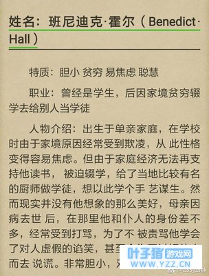 【求生者】班尼迪克·霍尔(Benedict·Hall)