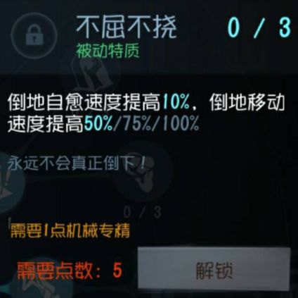 3.冷静主线的不屈不挠修改为倒地自愈速度提高10%,倒地移动速度提高50/75/100%。