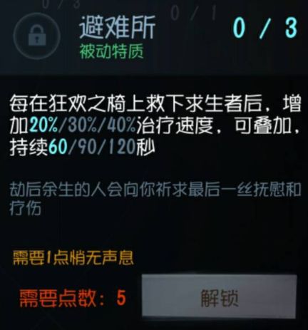 2.冷静支线的稻草人修改为愈合( 变相从这角度加强屠夫通缉天赋的群鸦 )——受到他人治疗的时间减少10/15/20%,以及修改友善支线的避难所——每当你救下狂欢之椅的队友会增加40%的治疗速度,效果持续120秒, 可叠加 。