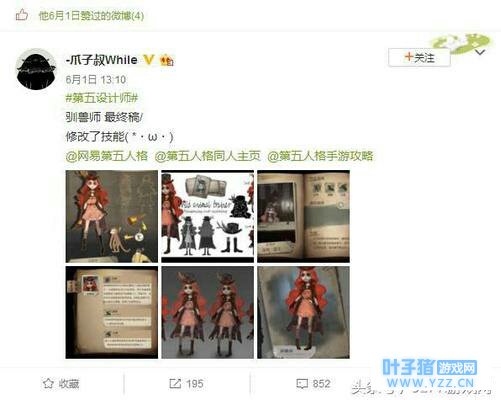 微博显示,官方在6月1日点赞了,某个博主的驯兽师终稿。