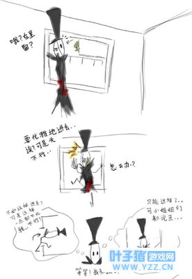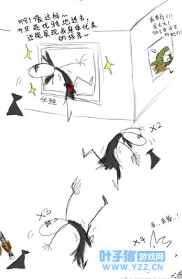 好不容易翻过了窗,,然而皮皮拥早已跑到了另一边,而且还在杰克的周围转悠,嘲笑着杰克。。丑哦。。好丑。。。可恶啊。。。啊,对了,