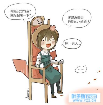 然后。。然后园丁就被绑在椅子上了,都上还有一个大包。。。“你是没力气么?就抬起来一下?还是急着去抱别的小姐姐?”真是的,果然男人就是靠不住啊,不是说只抱我一个吗??!都是骗人的,男人都是大猪蹄子,怎么可以这样对我!诶。。你倒是别走了,我还没说完.......