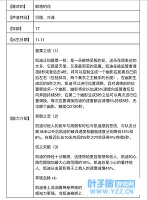 凯迪正如罂粟一样,是一朵鲜艳至极的花,这朵花想表达的太多,它既是天使,又是最邪恶的恶魔。凯迪在被监管者凝视8秒或者追击4秒,将可以控制生成一个幽影在距离自己前后左右(包括斜向,两个黄衣之主触手的长度),在幽影生成后的5秒之内,凯迪可以进行位置调换,且对调换前的位置释放另一个幽影,幽影将会以加速5%速度向监管者反反向奔跑持续5秒,在第二个幽影生成5秒之后可以再次进行位置调换,每次位置调换凯迪的速度都会减慢5%持续5秒,无论哪个幽影,触发CD120秒。