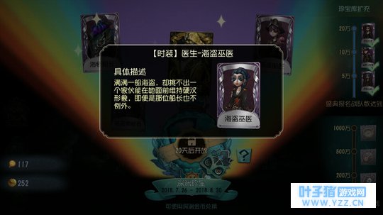 医生也得了“巫医”这个称号(不得不说医生戏份挺多的) 而在游戏更新后,一些角色也出了同系列皮肤,其中有船长的另一些船员。(接下来请收看非酋皮肤秀。。。)