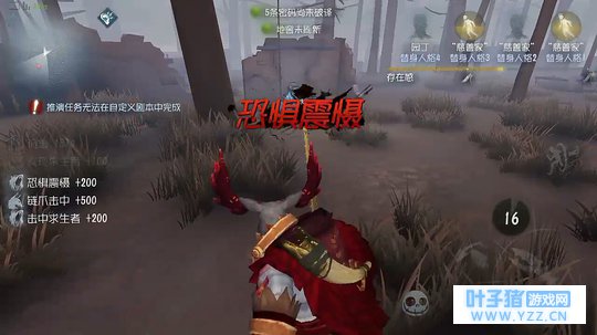 1、鹿头一级勾(拉人时不能造成伤害)击中交互中的求生者会显示恐惧震慑并打成残血。如下图