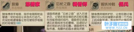 解密型特质 第三类:救人型求生者。这类求生者是救死扶伤的不二人选,在保护队友和救助椅子上的队友都有奇效,不仅可以降低救人的风险,还可以很好的帮助被救的队友逃生。此类求生者有空军、前锋、魔术师。