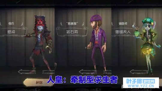 第五人格求生者 第一类:牵制型求生者。这类求生者一般是人皇,用于牵制监管者并拖延时间,让其他队友有更充足的时间去开机。目前版本适合做牵制型的求生者有慈善家、调香师和佣兵。这类求生者需要去勾引监管者,所以对于地图要非常熟悉,才能有效的牵制和遛监管者。