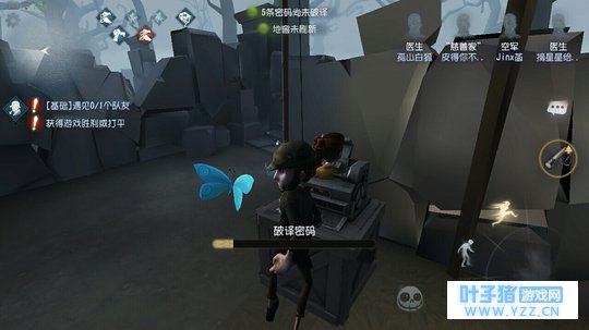 今天下午玩了一局慈善家,开局很常规地找电机,在一个熟悉的刷点遇到了空军,看到空军卡在密码机里了还在想为什么不点脱离卡点,但也没管,就开始修机,一开始先在右边修,但没有发现可修机的按键,后来又到中间试了试,出现了修机按键并能够正常破译,但空军仍然是不动的,所以我推测应该只是小bug,并没有实质影响。 最后把空军卡模的图贴上,别说,还真的像“慈善家”在“修”空军呢。