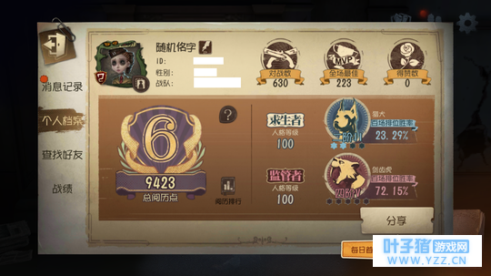 你需要的不只是一部手机,还需要一颗强大的心T﹏T,坚持就算被人类打爆也不能放弃的决心,在哪里跌倒,就在哪里 趴会 爬起,咳咳,要有良好的网络条件,除非你想体验体验人类在眼前溜走的感觉;最好有安静的环境和一副耳机,耳机的作用:A.在电机近旁可以听到求生者开机的声音 B.可以听到各种细微的声音,喘息 开箱 等声音 C.可以听盲女,开局磕杖的话,仔细听能听出方位,瞬间让他上天。毕竟我认为游戏可以输 盲女必须死。 二.熟记地图 背地图对于很多人来说很难,并不是要求会背整张地图,起码要知道大门在哪 地窖在哪刷,虽然开完5条密码后会有显示大门位置,但那时才知道门在哪就已陷入被动。按照小地图上北下南的话, 红教堂 两门: 正南+东北 。 军工厂 : 正北+正南(偏东) 圣心医院 : 正西+东南 三.天赋和技能 匹配技能随心所欲,而排位就严肃了,推荐红蝶带 传送 ,因为红蝶机动性高,带上传送可以极大干扰偷电速度追得敌人满地图跑;天赋推荐 一刀封窗 理由是一刀可以极大增大获胜 鸡喙 ,因为个人不会皮所以经常被溜的到处跑2333,所以带了封窗,还有一个好处,就是点了封窗顺带这 破坏欲 也满了,砸板速度第一不接受反驳! 四.游戏