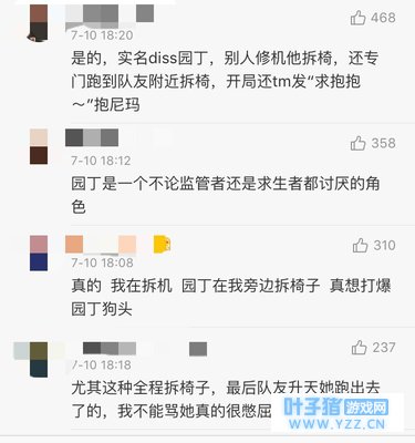 “作为屠夫只要有园丁拆我椅子,那sorry了这局就算输我也要追你追到死” 由此可以看出,不论是监管者还是求生者,园丁小姐姐都是大家最不待见的那个。 所以说,大家玩园丁的时候,队友在旁边修机的时候不要疯狂拆椅子,不然队友杀你的心都有了,哈哈哈~开玩笑 游戏嘛,大家开心就好啦~ 本文来源:bilibili,作者:bubble992,转载请注明来源。 |